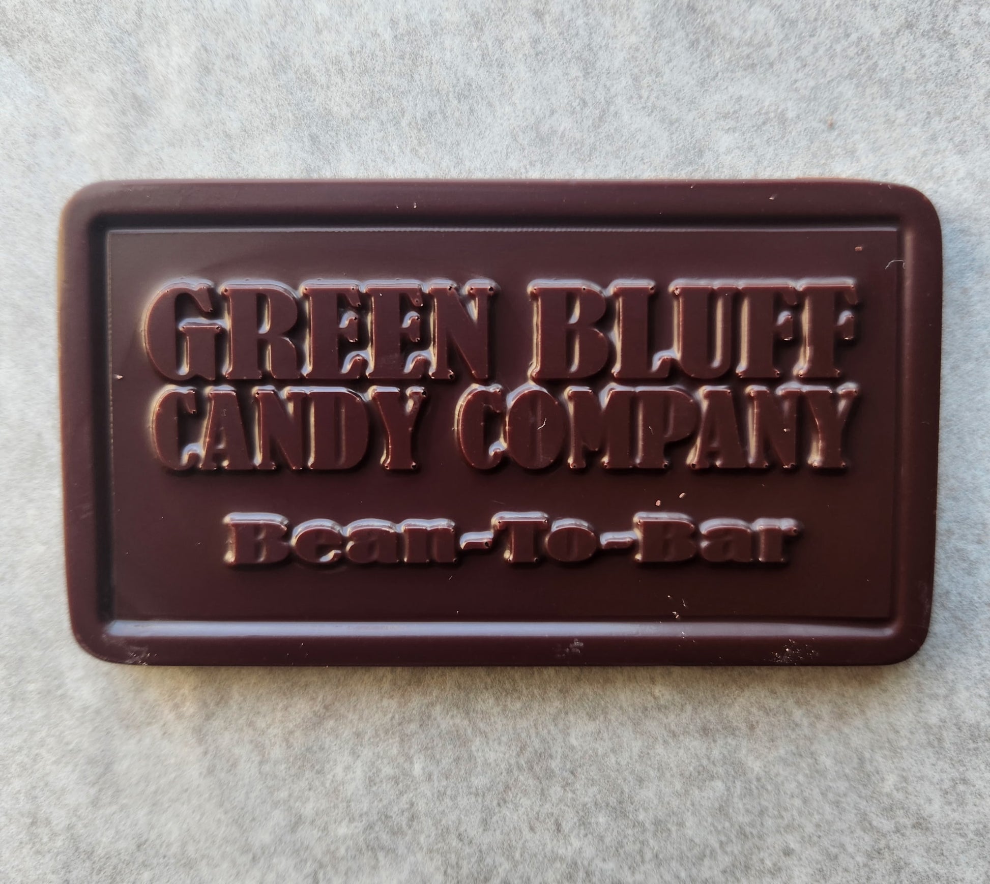1.2 Oz Bean To Bar Chocolate. Only 3 Ingredients for the chocolate (Chocolate Beans, Cocoa Butter, and Sugar). All flavors are grown on the farm or a neighbors farm, Freeze dried and then ground into a powder, then incorporated into the chocolate while tempering.